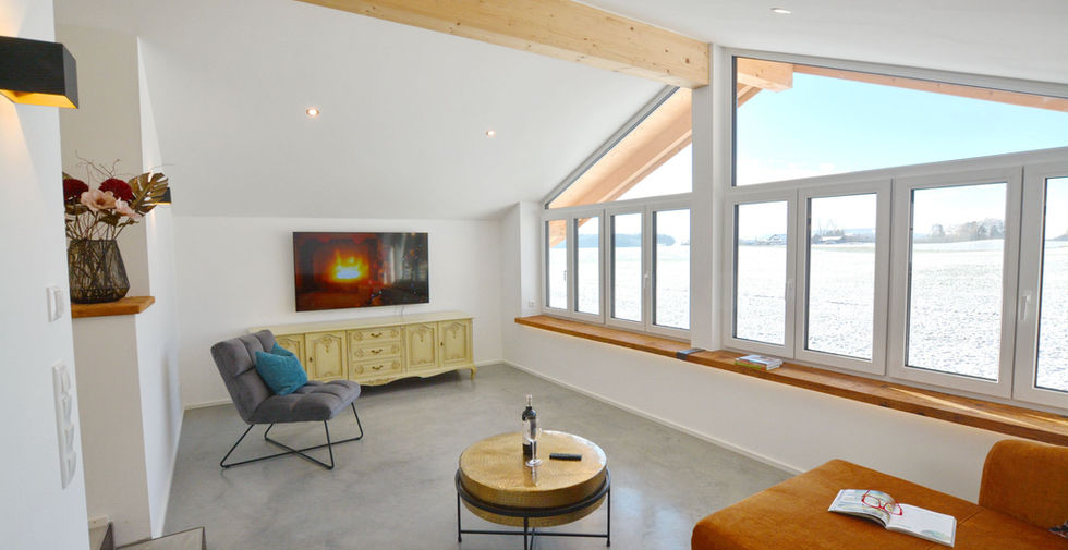 Das neue, luxuriöse Dachgeschoss-Loft „Meisterhof-LichtBlick“ bietet auf 70 m² modernen Wohnkomfort für zwei Personen und ein Kleinkind. Der offen gestaltete Wohn-, Ess- und Küchenbereich mit hochwertiger Ausstattung lädt zum Wohlfühlen ein. Auf der großen West-Terrasse genießen Sie einen traumhaften Blick auf die Chiemgauer Berge – Erholung pur inmitten der Natur!